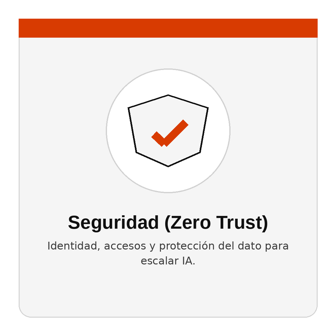 En paralelo, la seguridad se vuelve base, no accesorio. Cuando la IA accede a grandes volúmenes de información, cualquier mala configuración puede amplificar exposición. En contenidos internos se describe la lógica de Zero Trust aplicada a IA: controlar identidad, dispositivos y datos; restringir accesos; y gobernar uso con políticas y auditorías. La innovación solo escala cuando está protegida.